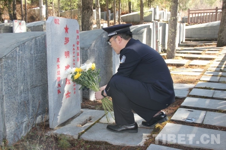 圖為西藏邊檢總站執(zhí)法調(diào)查支隊執(zhí)法調(diào)查七隊民警向烈士敬獻(xiàn)鮮花 攝影:李渠成