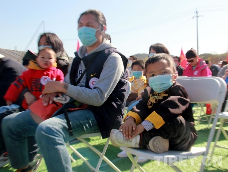 其中,3名剛剛手術(shù)痊愈出院、來自青海省果洛藏族自治州的患兒也參加了活動。圖為來自青海省果洛藏族自治州的孩子們和他們的家屬一起參加活動啟動儀式 攝影:劉莉