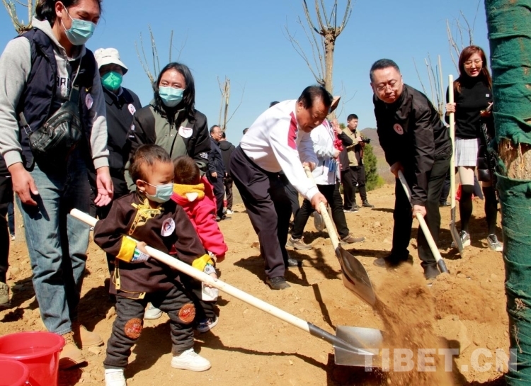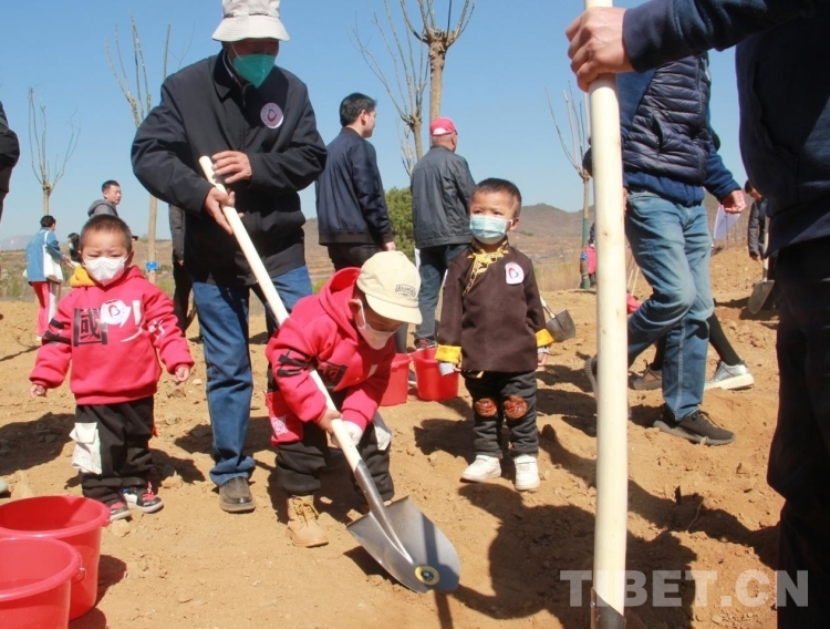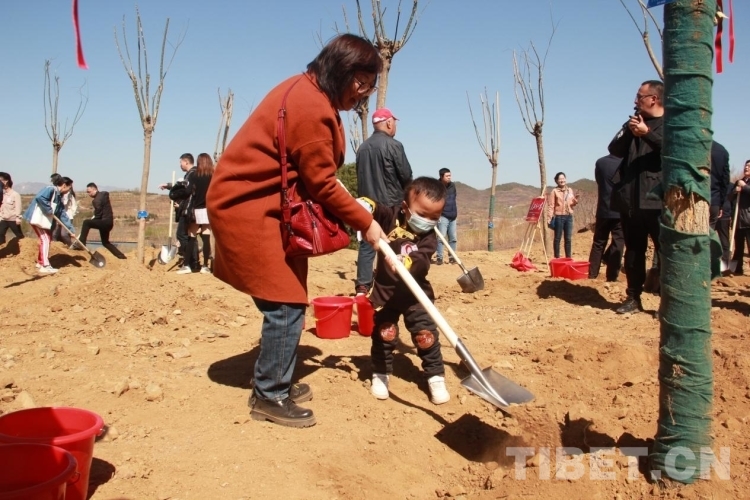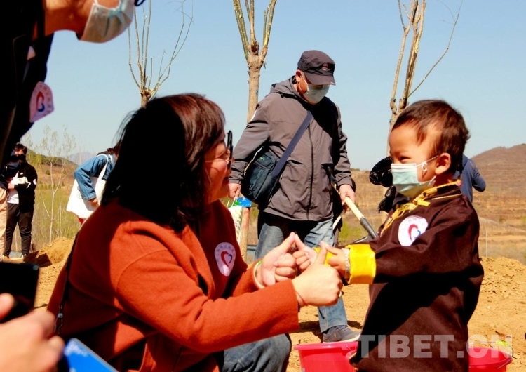 來自青海省果洛藏族自治州的多杰雖然才3歲多,但在掌握了鐵锨的使用后,他就成了整個植樹區(qū)域的熱心人,到處幫助別人鏟土,樂此不疲。圖為多杰正在幫助別人鏟土植樹 攝影:劉莉