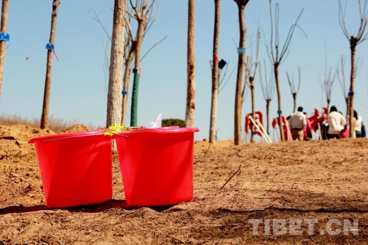 圖為多杰與北穆家峪村的回族老爺爺一起在同心林中種下了一棵粗壯的國槐 攝影:劉莉