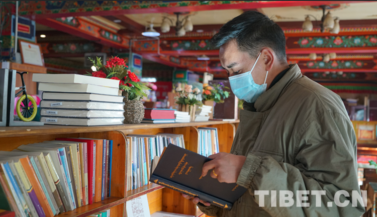 圖為西藏自治區(qū)拉薩市五明書店內(nèi)正在閱讀藏文書籍的讀者 攝影:趙振宇