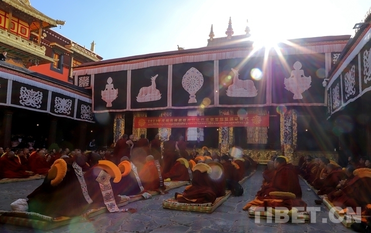 中國西藏網(wǎng)訊 4月23日(藏歷水兔年3月3日)上午,西藏自治區(qū)2023年度藏傳佛教學(xué)經(jīng)僧人考核晉升格西拉讓巴學(xué)位立宗答辯暨頒證儀式在拉薩大昭寺舉行。