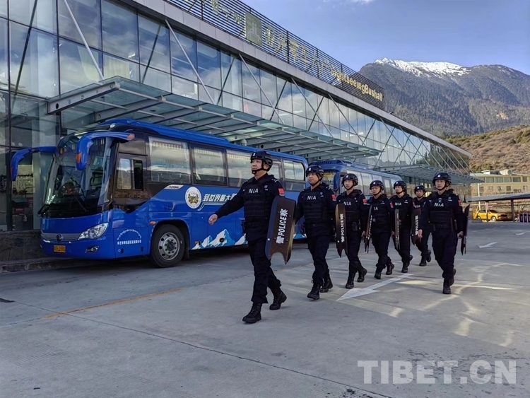 圖為林芝邊境管理支隊(duì)基層單位民警在景點(diǎn)巡邏 攝影:江才云旦