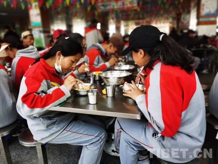 孩子住在學(xué)校,家長最不擔(dān)心的就是飲食問題,在“三包”政策下,學(xué)校食堂免費(fèi)日常供應(yīng)肉蛋奶、蔬菜、水果,營養(yǎng)配餐不僅讓學(xué)生吃得飽,而且吃得有營養(yǎng)。同時(shí),學(xué)校每天還提供糌粑、酥油茶、清茶等西藏傳統(tǒng)食品。