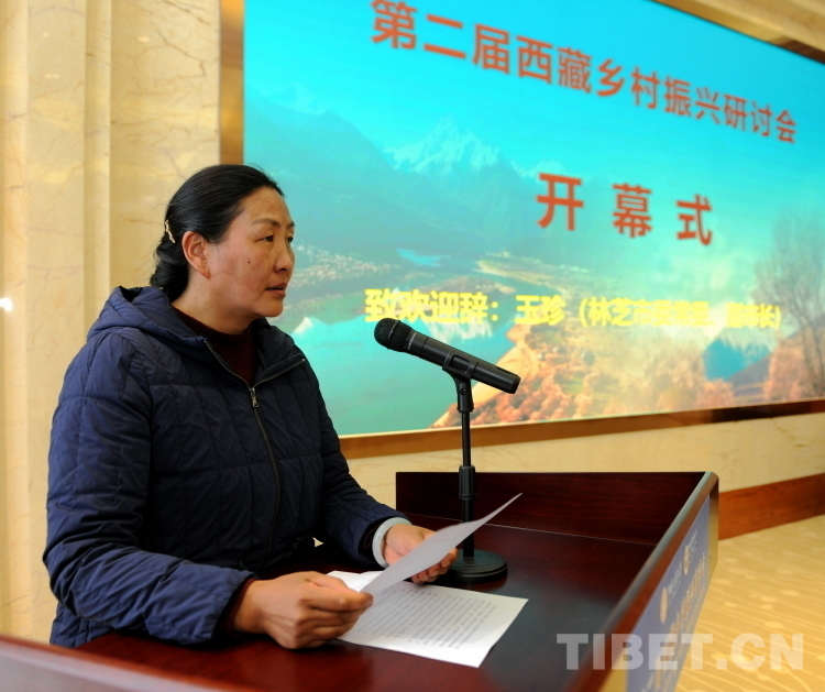圖為林芝市委常委、副市長(zhǎng)玉珍致辭