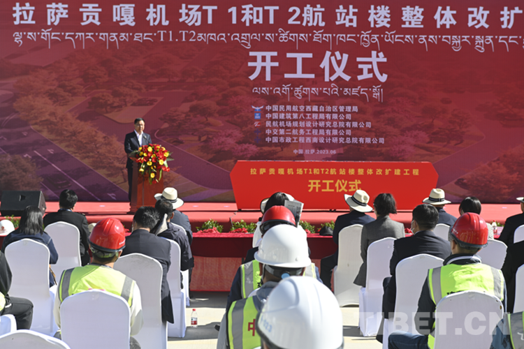 中國(guó)西藏網(wǎng)訊 6月2日,民航西藏區(qū)局舉行拉薩貢嘎機(jī)場(chǎng)T1和T2航站樓整體改擴(kuò)建工程開工儀式。