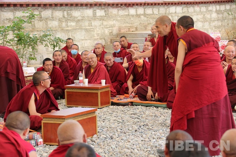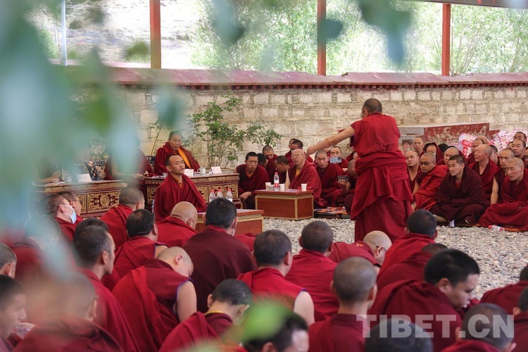 圖為中國(guó)藏語系高級(jí)佛學(xué)院2023年“拓然巴”高級(jí)學(xué)銜班招生考試(西藏)考點(diǎn)的辯經(jīng)考試現(xiàn)場(chǎng) 攝影:王佳豪