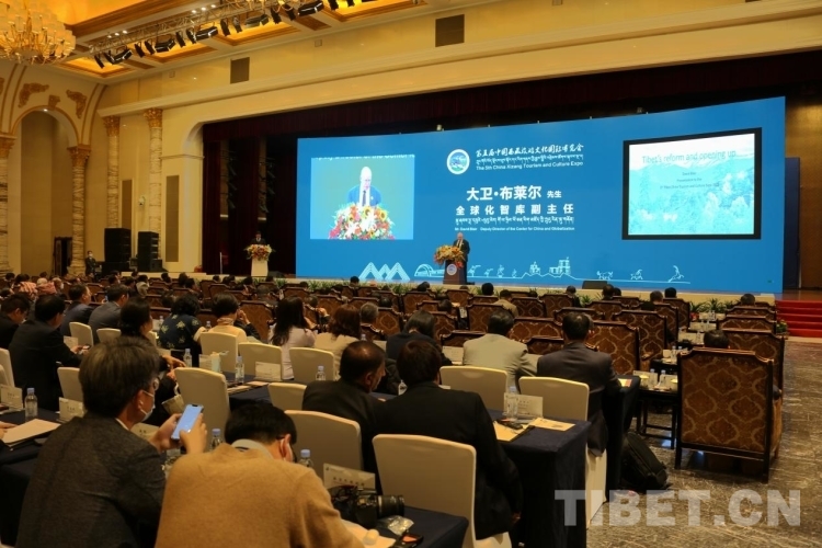 圖為大衛(wèi)·布萊爾在第五屆中國西藏旅游文化國際博覽會(huì)主旨論壇發(fā)表演講 攝影:王佳豪