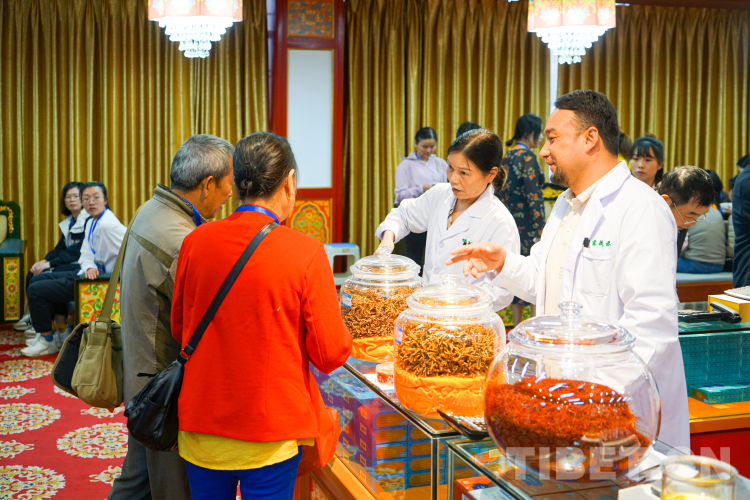 圖為在甘露藏醫(yī)藥文化展館內(nèi),咨詢藏醫(yī)藥產(chǎn)品的游客絡(luò)繹不絕 攝影:趙振宇