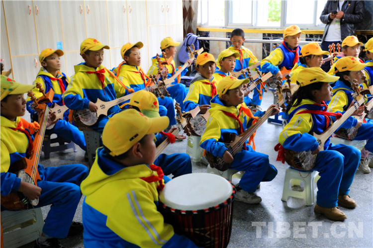 圖為西昌鄉(xiāng)小學學生在學習傳統(tǒng)樂器扎木念 攝影:王茜