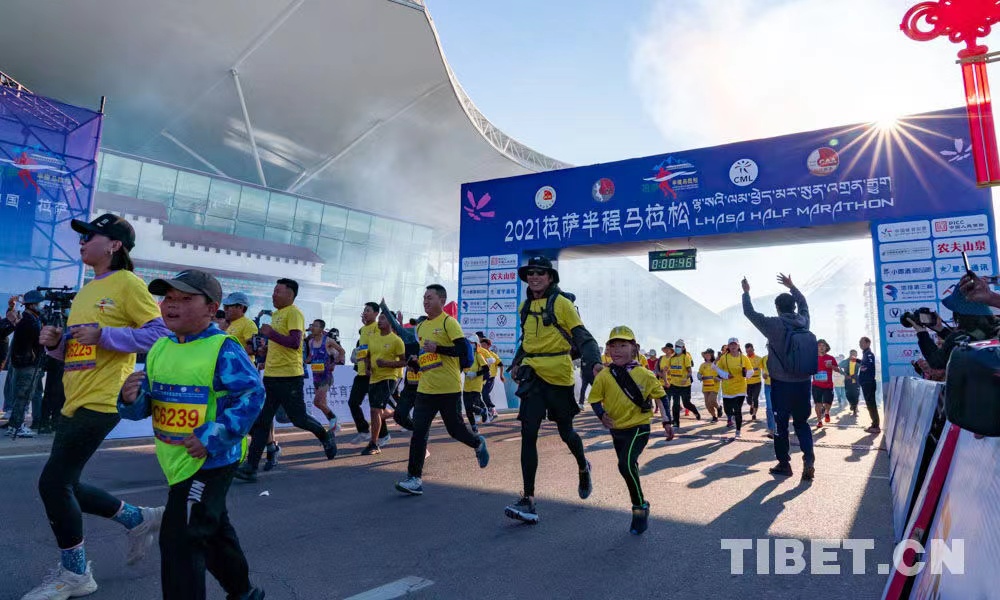 圖為2021年拉薩半程馬拉松比賽現(xiàn)場(chǎng) 攝影:趙耀