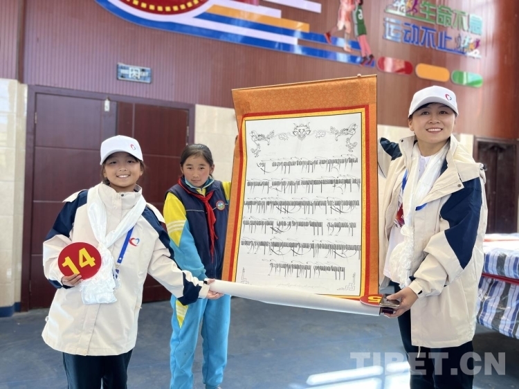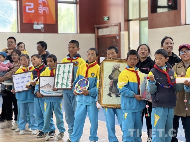 圖為旁多鄉(xiāng)中心小學(xué)的學(xué)生們?yōu)橹驹刚邆兲刈逦璧?攝影:德吉卓瑪