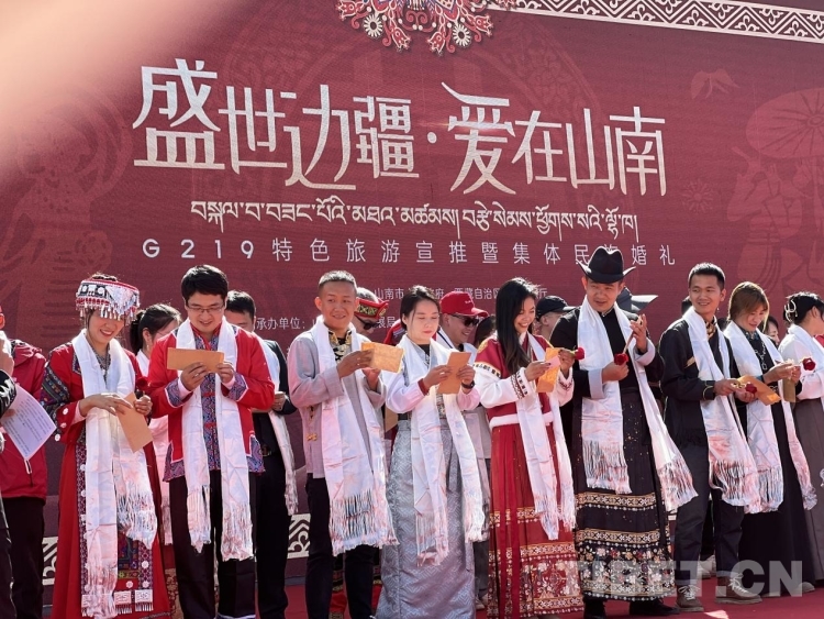 參加此次集體婚禮的新人中有來自北京、廣西、長沙、重慶等區(qū)外的游客,也有來自G219沿線縣(區(qū))的山南當?shù)厍閭H,有漢族、藏族、彝族、苗族、回族等不同民族通婚的情侶、夫妻,他們年紀有別、身份不同、職業(yè)各異,卻都選擇來到山南奔赴這場浪漫之旅。在接下來的六天,他們將陸續(xù)前往山南市加查縣、隆子縣、措美縣、洛扎縣及浪卡子縣,在欣賞大美邊疆風(fēng)光、領(lǐng)略特色民族風(fēng)情的同時,感受中華民族一家親的團結(jié)精神。