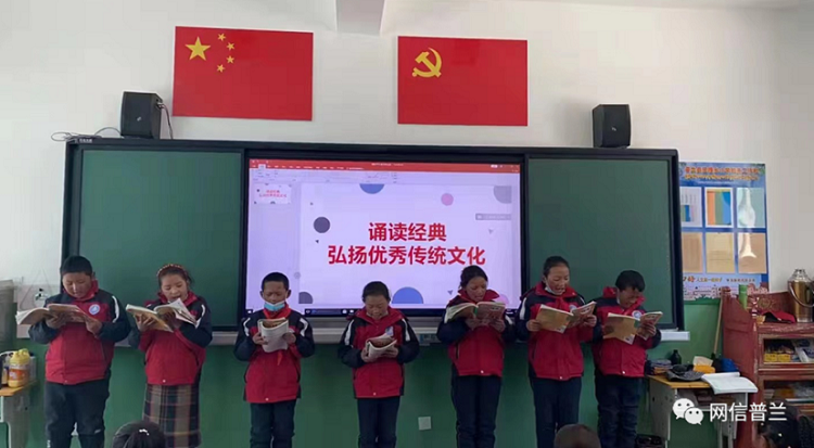 圖為巴嘎鄉(xiāng)小學舉辦誦讀經(jīng)典活動 圖片來源:網(wǎng)信普蘭