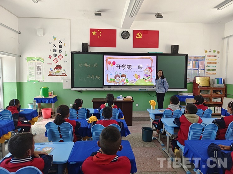 圖為巴嘎鄉(xiāng)小學開學第一課 圖片由西藏民族大學財經(jīng)學院提供