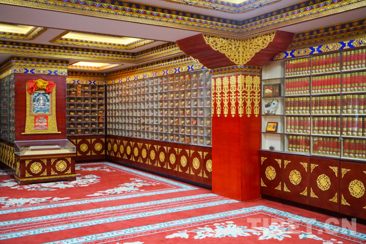 在西藏民族大學(xué)圖書館的藏學(xué)信息研究中心內(nèi),房間四周精致的藏式書柜中珍藏著包括德格版、拉薩版、北京版等多個版本《藏文大藏經(jīng)》,還有法藏、英藏、俄藏、國家圖書館收藏的多個版本《敦煌藏文文獻(xiàn)》,以及《中華大藏經(jīng)》對勘本、《藏傳佛教高僧弘法手跡珍典》《甘肅青海四川民間古藏文苯教文獻(xiàn)》《中國藏醫(yī)藥影印古籍珍本》等多種珍本,這些典籍是中華民族傳統(tǒng)文化中璀璨的瑰寶,跨越著時間和地域與民大學(xué)子進(jìn)行著時空對話。