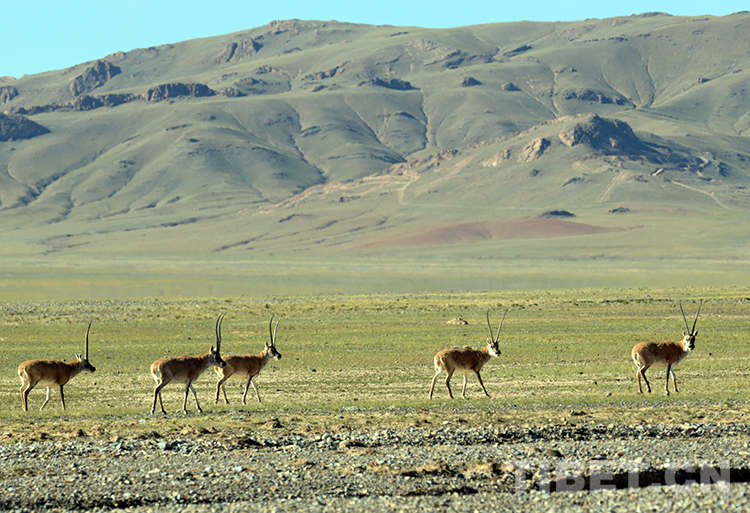 在羌塘國(guó)家級(jí)自然保護(hù)區(qū)悠閑漫步的國(guó)家一級(jí)保護(hù)動(dòng)物藏羚羊(唐召明2019年9月20日攝)