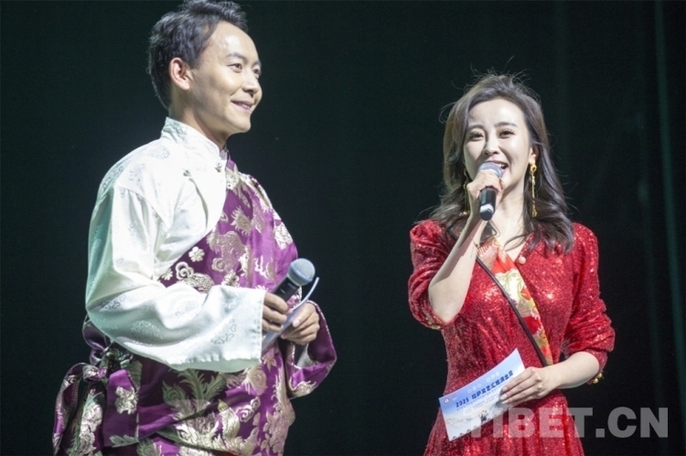 圖為《拉薩情》文藝匯演現(xiàn)場(chǎng)主持人開場(chǎng) 攝影:楊月云