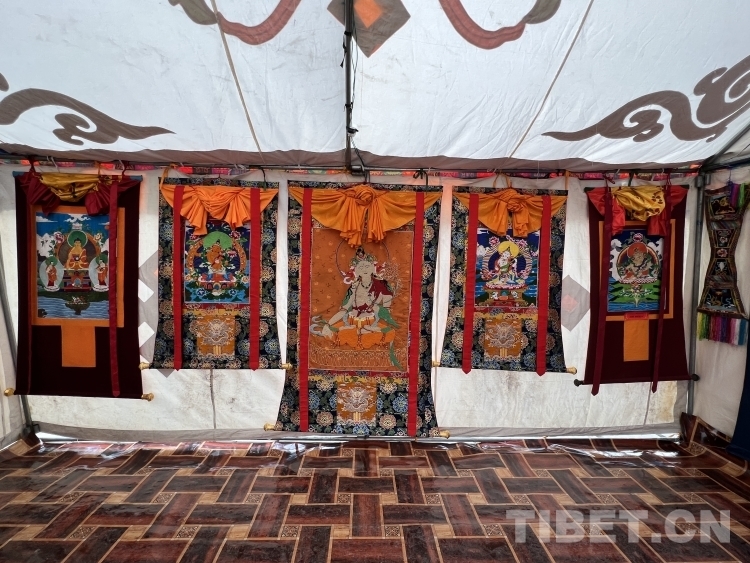 中國西藏網(wǎng)訊 在你印象中,西藏唐卡是怎樣的呢?除了一筆一畫的匠心工筆外,還有一針一線的飛針走線。2023年盛夏8月,記者在西藏日喀則市定結(jié)縣第十七屆夏爾巴旅游文化節(jié)展銷會(huì)上采訪時(shí),遇到了難得一見的“珍珠唐卡”。在白帳篷里,一對(duì)夫妻正埋頭干針線活,他們端坐在木質(zhì)繡架前一針一線串起珍珠、綠松石、珊瑚等珍貴珠寶,在這熱鬧的集市中顯得格外寧靜。