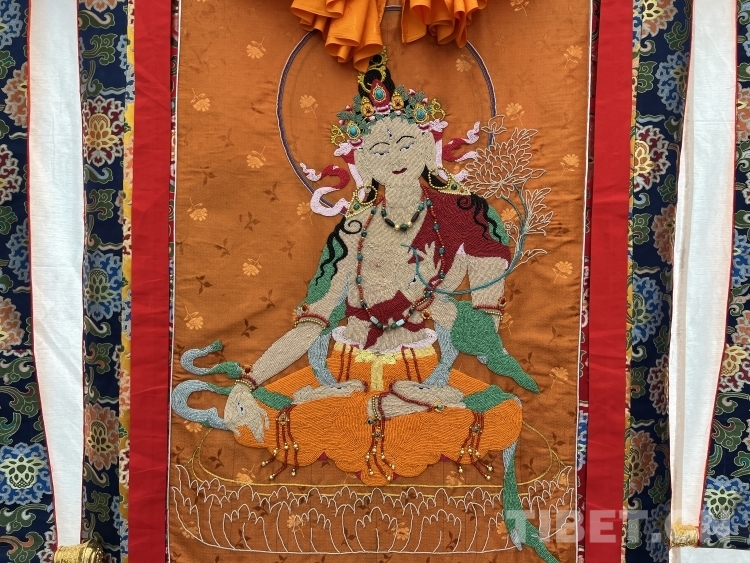堆繡是唐卡的一種,藏語稱之為“格直卜”或“規(guī)唐”。據(jù)《中國美術(shù)史》記載,堆繡是由刺繡藝術(shù)發(fā)展而來,融入了刺繡工藝的布貼藝術(shù),起源于唐朝。在中國除了蘇繡、湘繡、粵繡和蜀繡這"四大名繡"外,還有京繡、魯繡、杭繡、閩繡等地方名繡,我國的少數(shù)民族如維吾爾族、彝族、壯族、蒙古族、藏族等也都有自己獨(dú)特風(fēng)格的民族刺繡。藏繡,亦是中國少數(shù)民族傳統(tǒng)文化中最具特色的刺繡派系之一,它源于公元九世紀(jì),與唐卡、堆繡并稱為藏傳佛教三大藝術(shù)。
