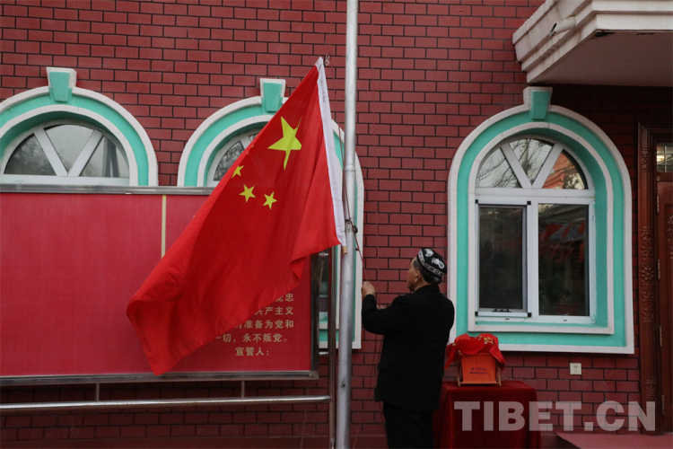 中國(guó)西藏網(wǎng)訊 日常的清晨,走在哈爾墩社區(qū)的街道上,推開街道拐角的一處紅色大門,就能看到一個(gè)平靜整潔的小院。沙勒克江·依明老人和他的老伴早早地站在小院中間,微笑著迎接走訪團(tuán)隊(duì)的到來。他們的右手邊是一根锃亮的銀色升旗桿,旗桿上已經(jīng)升起的五星紅旗在清晨的微風(fēng)里輕輕舒展開來。