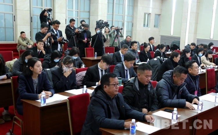 圖為中央駐藏媒體及西藏自治區(qū)媒體代表在會(huì)上認(rèn)真聽取新聞發(fā)言人通報(bào)相關(guān)情況 攝影:王佳豪
