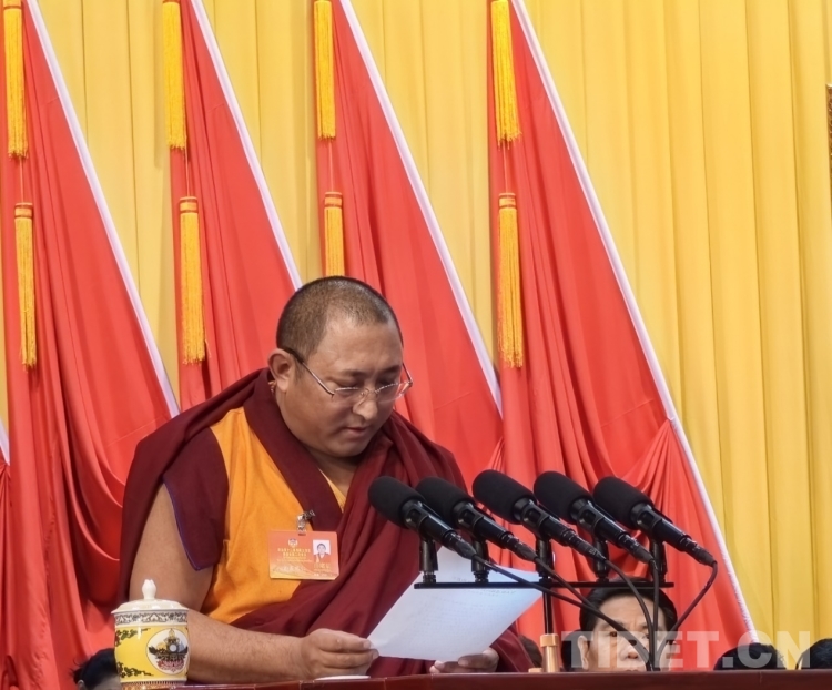 圖為宗教界政協(xié)委員吉美慈仁發(fā)言 攝影:王淑