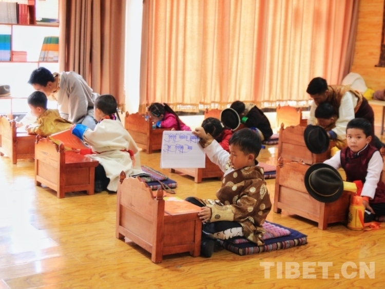 圖為在藏文書(shū)法課上認(rèn)真寫(xiě)字的小朋友們