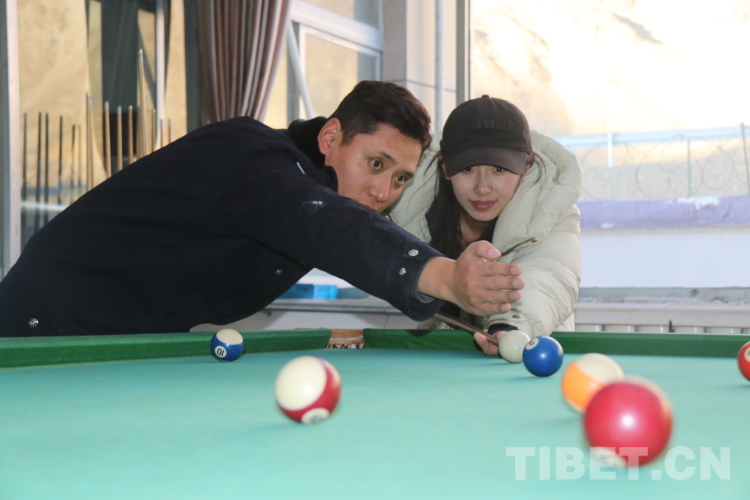 圖為單位陽光房里洛追與永措切磋球技,洛追在旁耐心指導 攝影:鄭鵬飛