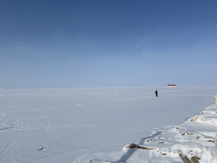 青海湖是我國(guó)面積最大的內(nèi)陸湖泊,湖岸線長(zhǎng)約360公里。落雪后的湖面更是白茫茫一片,極目遠(yuǎn)眺,水與天相接。天地間十分安靜,只余不太溫柔的風(fēng)聲在耳側(cè)呼嘯而過。偶爾有游人在冰面走動(dòng),在白色的背景下顯得格外醒目。我們的無人機(jī)好像一只勇敢的沙鷗,翱翔在水天之間。(中國(guó)西藏網(wǎng) 文/李一凡 龍真多吉 張萌萌)