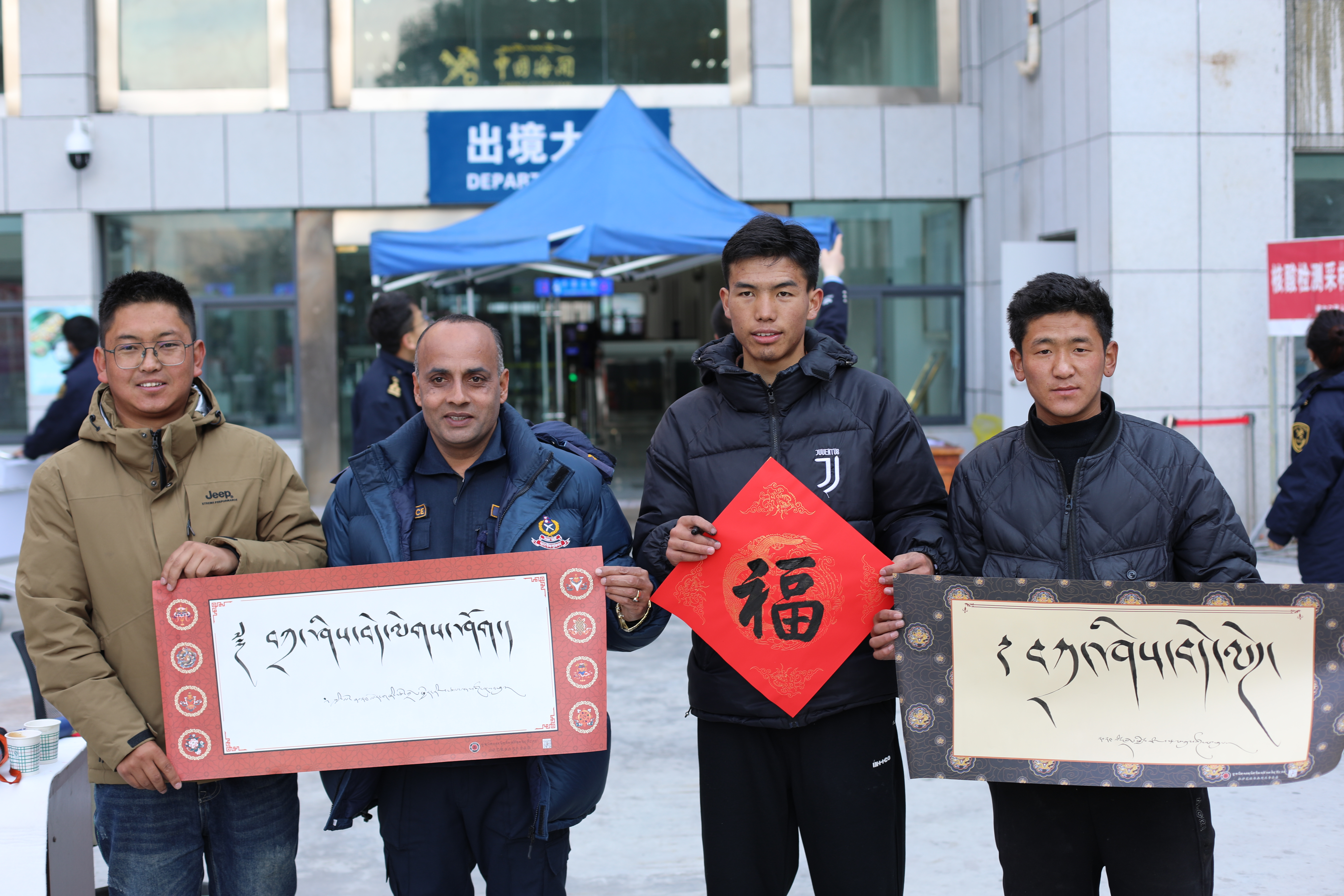 據(jù)了解,此次活動(dòng),文藝志愿者們走進(jìn)海拔4500米以上的高海拔鄉(xiāng)鎮(zhèn)、深入邊境一線口岸村莊、行走里程達(dá)4000余公里,為偏遠(yuǎn)的群眾、邊境一線干部職工、海關(guān)、邊檢站、口岸國(guó)門、游客以及市直機(jī)關(guān)單位等共贈(zèng)送了書(shū)法作品和全家福4000余幅,《珠穆朗瑪》等精品圖書(shū)500余冊(cè),學(xué)生文具200余套。通過(guò)送文藝演出、書(shū)法作品、圖書(shū)、拍全家福為主體的“三送一拍”活動(dòng),為大家?guī)?lái)了一場(chǎng)豐富多彩的文化盛宴,送來(lái)了春節(jié)和藏歷新年的美好祝福。