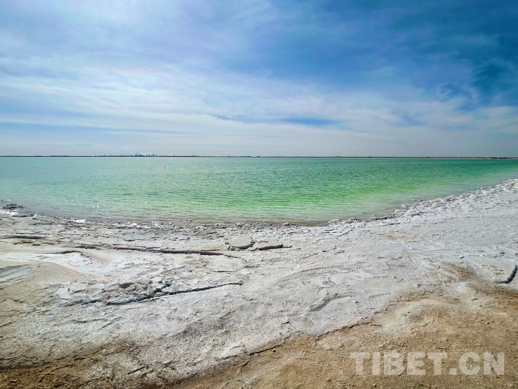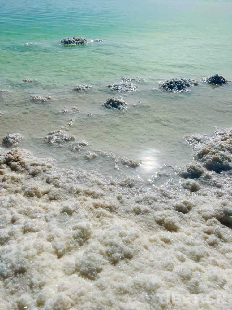 這里是鹽的天堂。湖水是高濃度的鹵水,蘊(yùn)藏著極其豐富的氯化鈉、氯化鉀、氯化鎂等無(wú)機(jī)鹽。厚度近20米的堅(jiān)硬鹽蓋構(gòu)成天然的鹽橋,旁無(wú)護(hù)欄,下無(wú)橋墩,更無(wú)流水。我們的汽車(chē)疾馳而過(guò),毫無(wú)顛簸之感。湖岸邊有大量析出的鹽晶,形成厚實(shí)的白色鹽灘,在高原陽(yáng)光的直射下發(fā)出晃眼的白光。(中國(guó)西藏網(wǎng) 文/李一凡 龍真多吉 張萌萌)