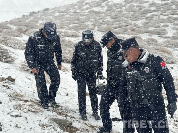 圖為斜爾瓦執(zhí)勤點(diǎn)民警冒著風(fēng)雪開(kāi)展巡邏踏查 攝影:格熱
