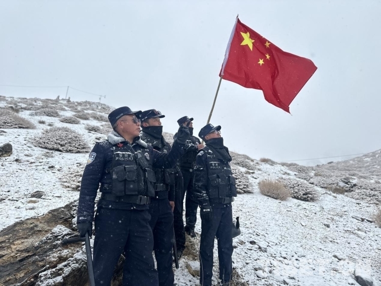 西藏戍邊民警在風(fēng)雪中巡邏踏查