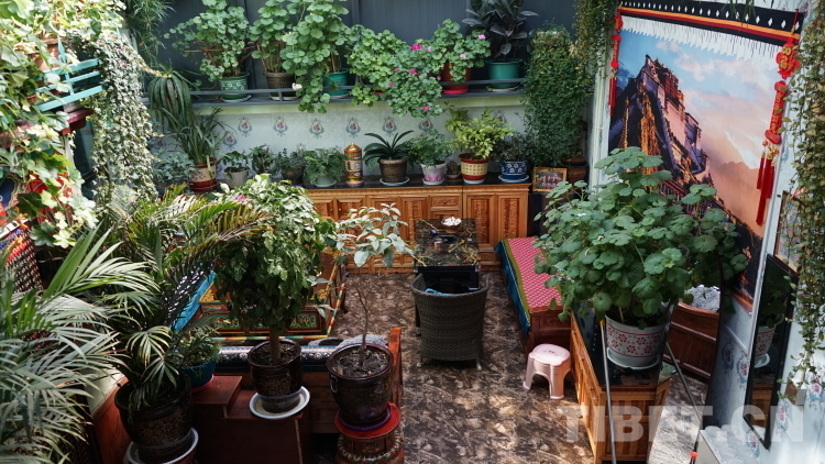 德瓊家庭旅館以女主人次仁德瓊的名字命名。工作人員告訴我們,這里是拉康鎮(zhèn)生意最好的旅館之一。旅館位于兩條主干道交接的拐角,地理位置好,招牌也立得醒目,每個進入鎮(zhèn)子的人第一眼就能看到德瓊家庭旅館的招牌。但生意好絕不僅僅是因為地理位置優(yōu)越。走進這間旅館,如同進入一間溫室花棚。在這里,花草植物是絕對的主角,各色草本、藤本、灌木植物高低錯落,幾乎填滿了墻壁空間。蕭瑟的冬日里,粉的、白的、紅的花朵擠擠挨挨地開著,茉莉、山茶、三角梅...來自不同地域的花卉植物在這邊境小鎮(zhèn)的一隅競相綻放,天南海北在此握手言和。德瓊阿佳用她對生活的熱情將家庭旅館裝點得生機盎然,我想正是這份純真的熱愛才是德瓊家庭旅館生意火爆的關(guān)鍵所在。