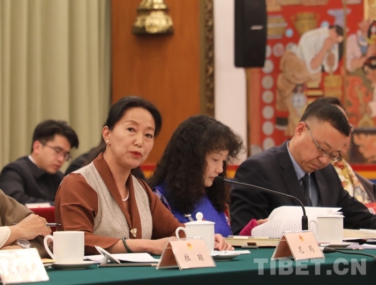 圖為尼瑪在十四屆全國人大二次會議西藏代表團開放團組會議上發(fā)言