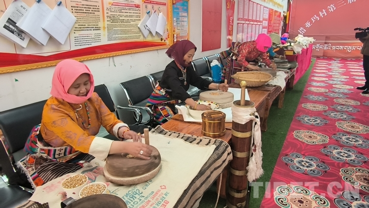 圖為手工磨糌粑比賽現(xiàn)場
