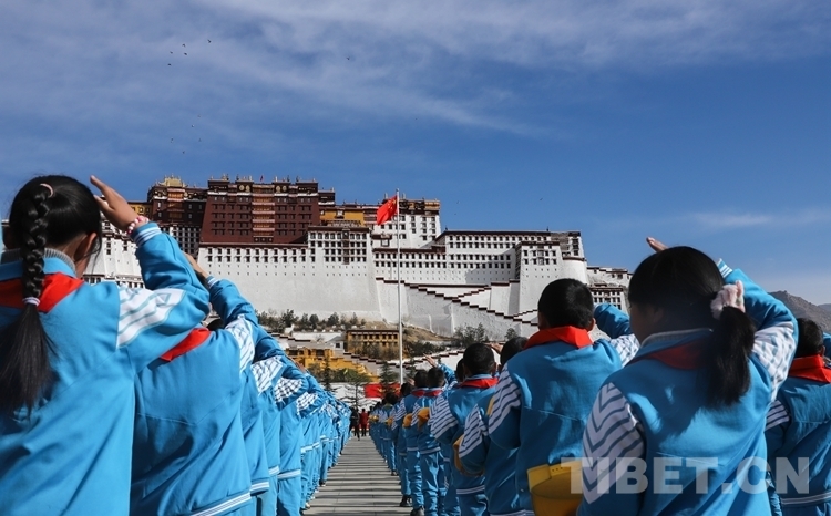 國(guó)旗下,拉薩各族各界干部群眾衷心祝愿?jìng)ゴ笞鎳?guó)更加繁榮昌盛,祝愿西藏的明天更加美好。