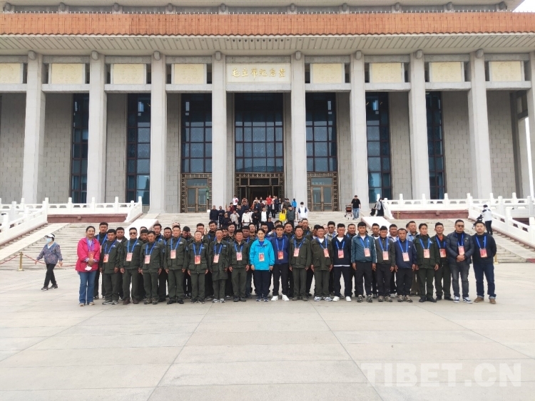 圖為“西藏自治區(qū)野生動(dòng)物保護(hù)員進(jìn)京考察學(xué)習(xí)團(tuán)”成員在毛主席紀(jì)念堂前的合影留念 攝影:周晴晴