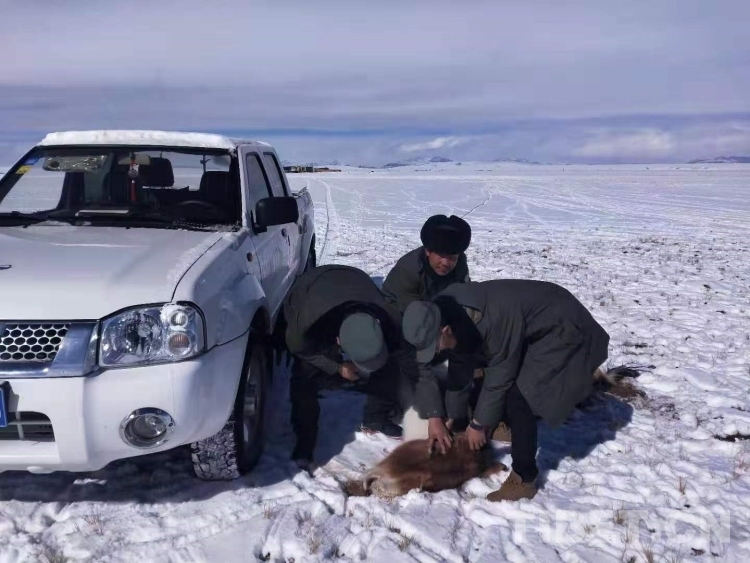 圖為扎西索朗與戰(zhàn)友們?cè)诰戎我吧鷦?dòng)物(中間為扎西索朗)
