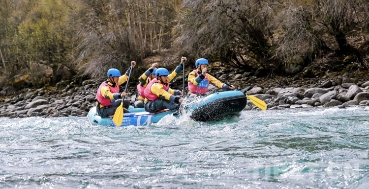 公開(kāi)賽的第二天,高原峽谷天氣雖有短暫突變,比賽也一度延遲,但接下來(lái)云開(kāi)霧散的巴河河道,卻在雪山、杜鵑、桃花和村落的映襯下格外清麗脫俗,29支四人漂流艇拉力賽隊(duì)伍,隨著發(fā)令槍響,依次如利箭般劃出。經(jīng)全程8公里奮勇拼搏,由成都伽斯特健身俱樂(lè)部、重慶彭水縣和朝陽(yáng)戰(zhàn)隊(duì)三支隊(duì)伍獲四人漂流艇拉力賽前三名。