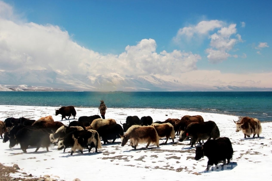圖為群眾在位于西藏自治區(qū)阿里地區(qū)普蘭縣的瑪旁雍錯(cuò)汲水 攝影:劉莉