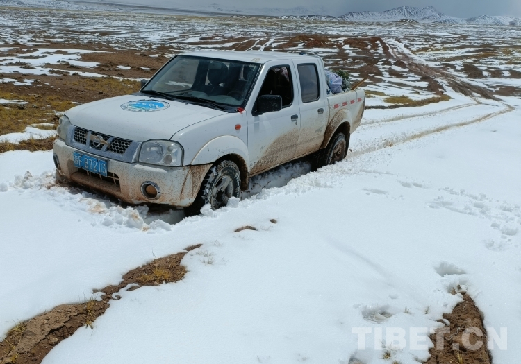 圖為巡護(hù)途中汽車陷入泥地 圖片由索南米瑪提供