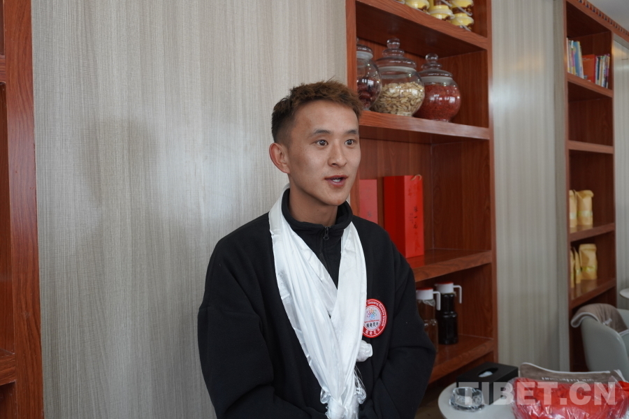 圖為正在接受采訪的格桑花開(kāi)體驗(yàn)館運(yùn)營(yíng)負(fù)責(zé)人丹增洛色 攝影:張曉琪