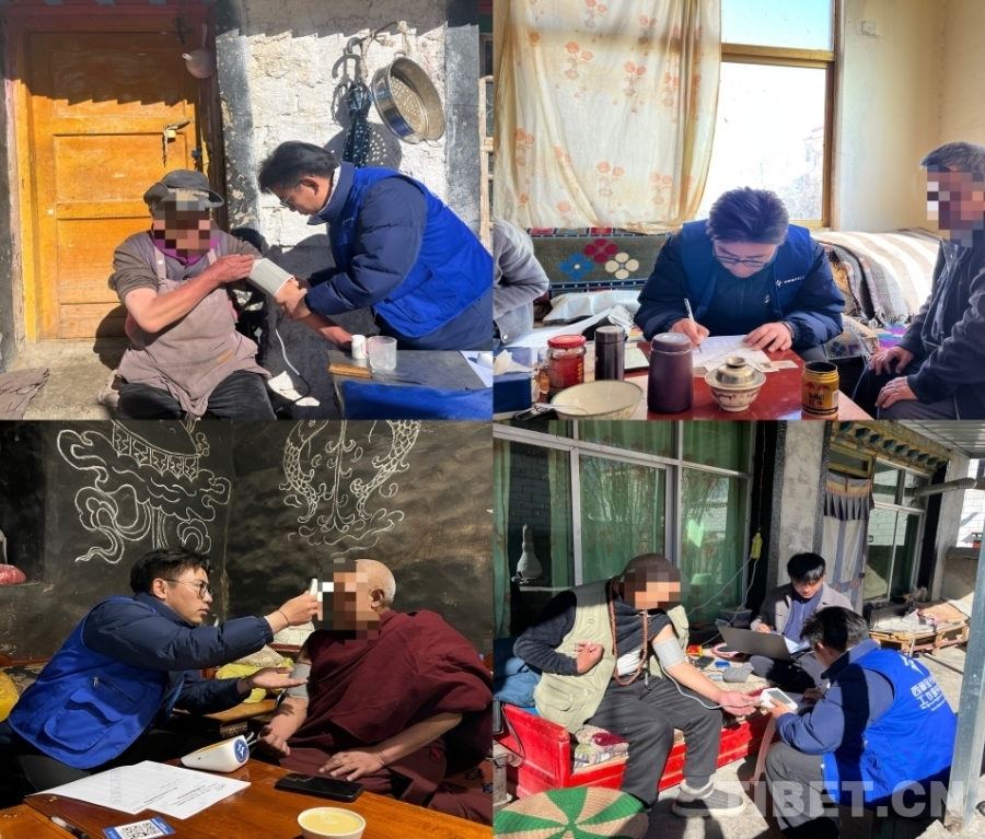 圖為西藏星光社會工作服務中心社工為老人進行血壓脈搏測試和基本信息登記 受訪者供圖