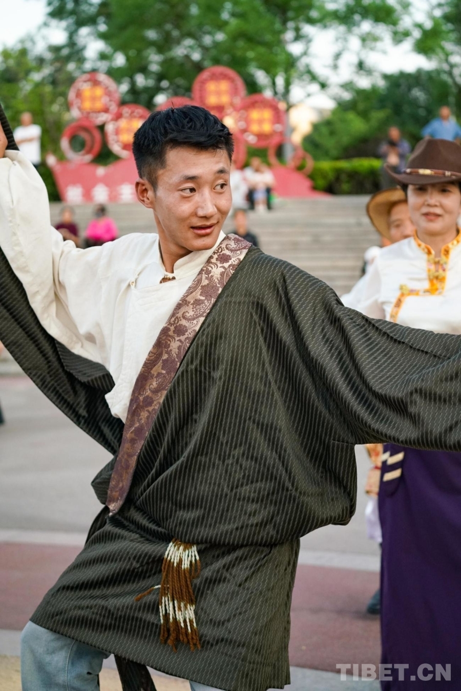 我坐在舞臺側(cè)邊的位置,等待他們進行彩排,聽到一聲熟悉的聲音叫我“姐”,我一回頭,原來是小志?!澳阍趺磥砝??隊里忙嗎?”他和我聊了最近的工作生活,單位在了解到他為推廣和傳承傳統(tǒng)藏舞的經(jīng)歷后,也對此表示支持,希望他能在干好本職工作的同時,也帶著心中的熱愛把家鄉(xiāng)的傳統(tǒng)文化傳得更遠更廣。