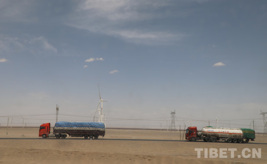 圖為貨車(chē)在青藏公路上奔馳 攝影:王茜