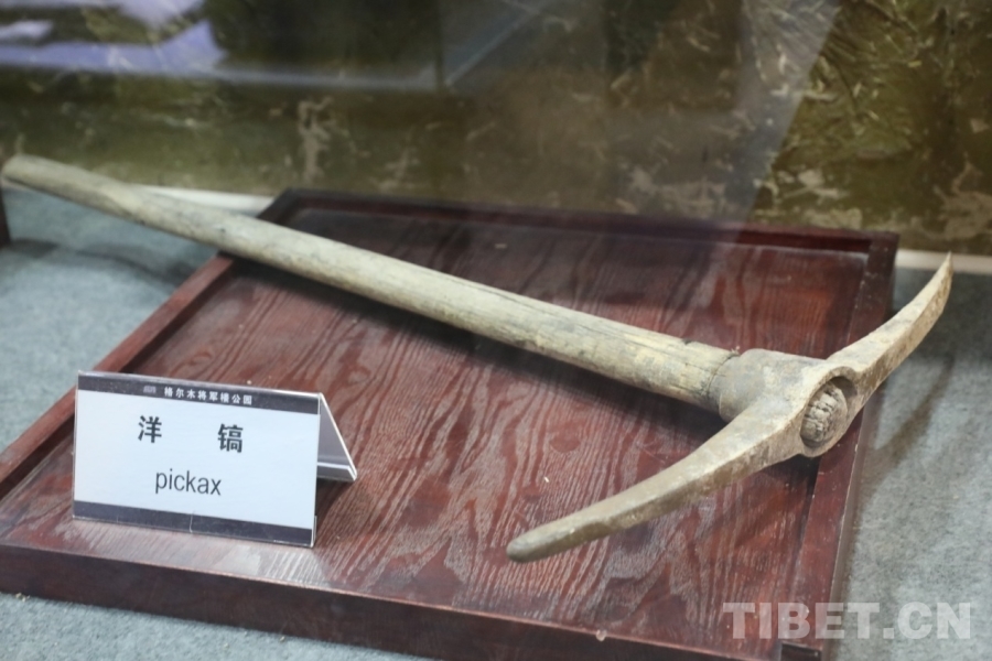圖為格爾木將軍樓公園青藏公路紀(jì)念館內(nèi)的展品——洋鎬