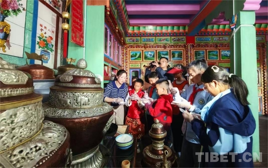 圖為四省(區(qū))市學(xué)生們?cè)谖鞑夭俭w驗(yàn)卡塞的制作