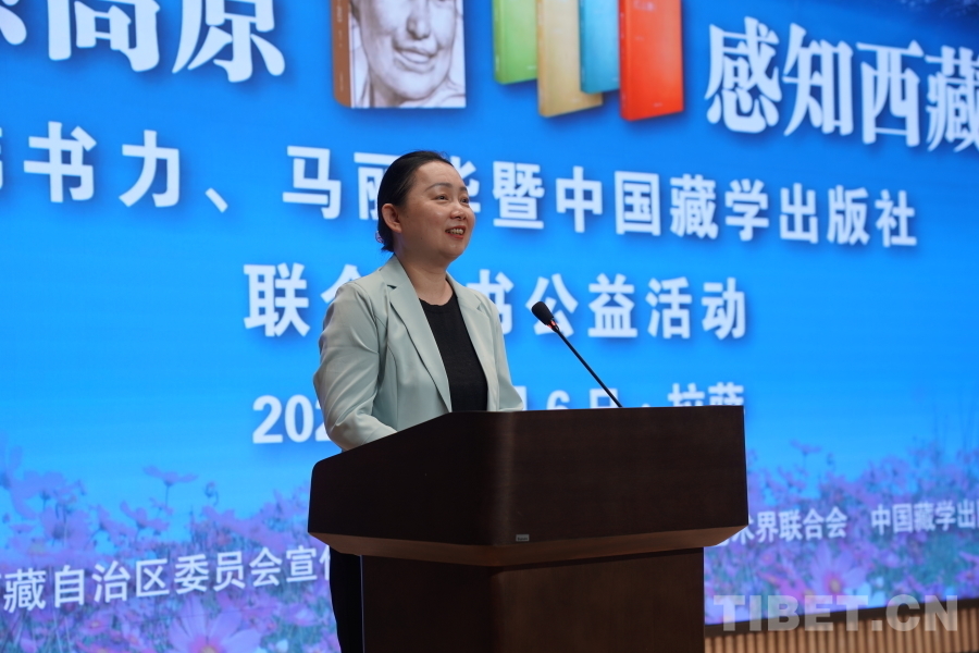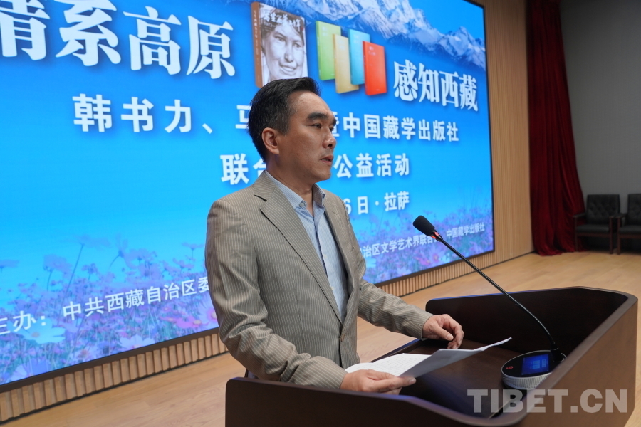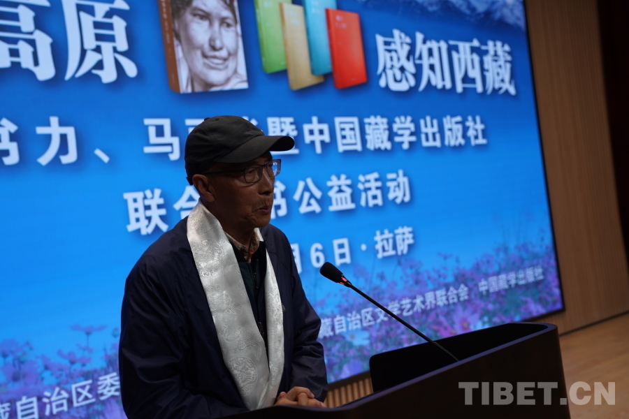中國西藏網(wǎng)訊 6月6日上午,由西藏自治區(qū)黨委宣傳部主辦,自治區(qū)文聯(lián)、中國藏學出版社承辦的“情系高原 感知西藏——韓書力、馬麗華暨中國藏學出版社聯(lián)合贈書公益活動”在西藏美術館學術報告廳舉辦。自治區(qū)黨委宣傳部副部長何瑞,中國藏學出版社社長洪濤,自治區(qū)文聯(lián)黨組成員、副主席陳人杰,自治區(qū)黨委原常委、自治區(qū)政協(xié)原副主席德吉措姆,自治區(qū)文聯(lián)原主席、西藏美術家協(xié)會原主席韓書力,中國藏學出版社原總編輯、自治區(qū)文聯(lián)原副主席、西藏作家協(xié)會原副主席馬麗華等參加活動。